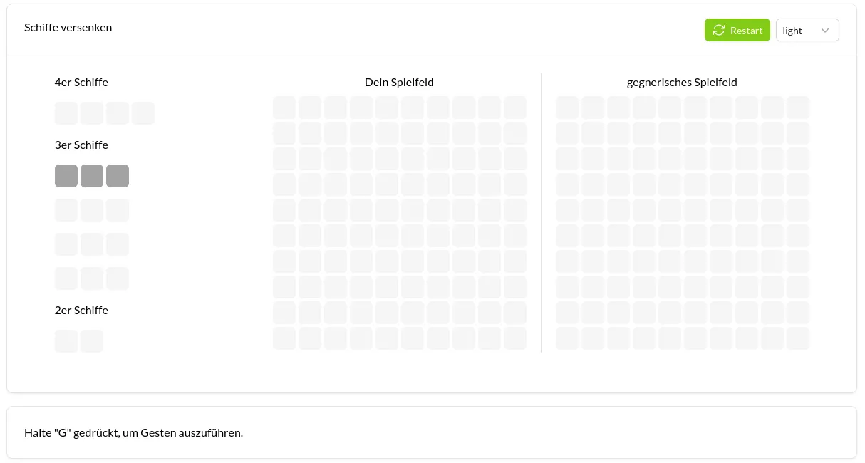 The famous Battleship game implemented as a website. The game can be played using mouse clicks and gestures. We also investigated implementing a Alexa Skill for voice input, but weren’t able to connect the skill with the page since there is no server for the website - it all runs locally in the browser.